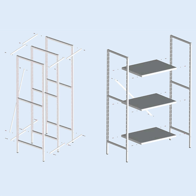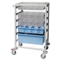 Deze universeel inzetbare uitgiftewagens zijn gemaakt van stevig vierkante buis van 30x30x2 mm. In de staanders zijn uitsparingen om de schuine en horizontale geleiders of schappen te bevestigen.